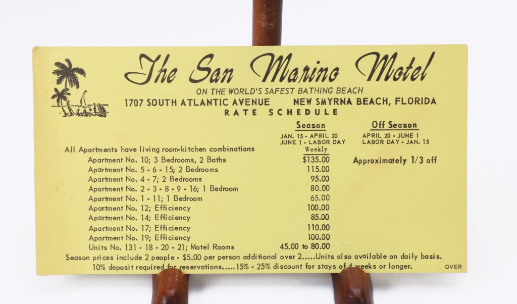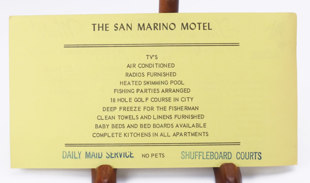 With television and air conditioning being advertised as a draw, I’m going to guess that this advertising flyer is from the 1960s.