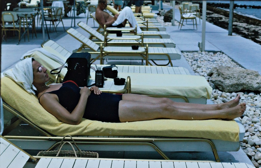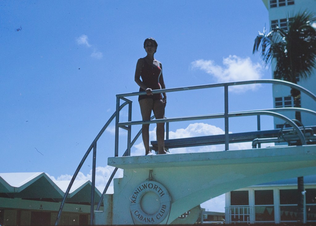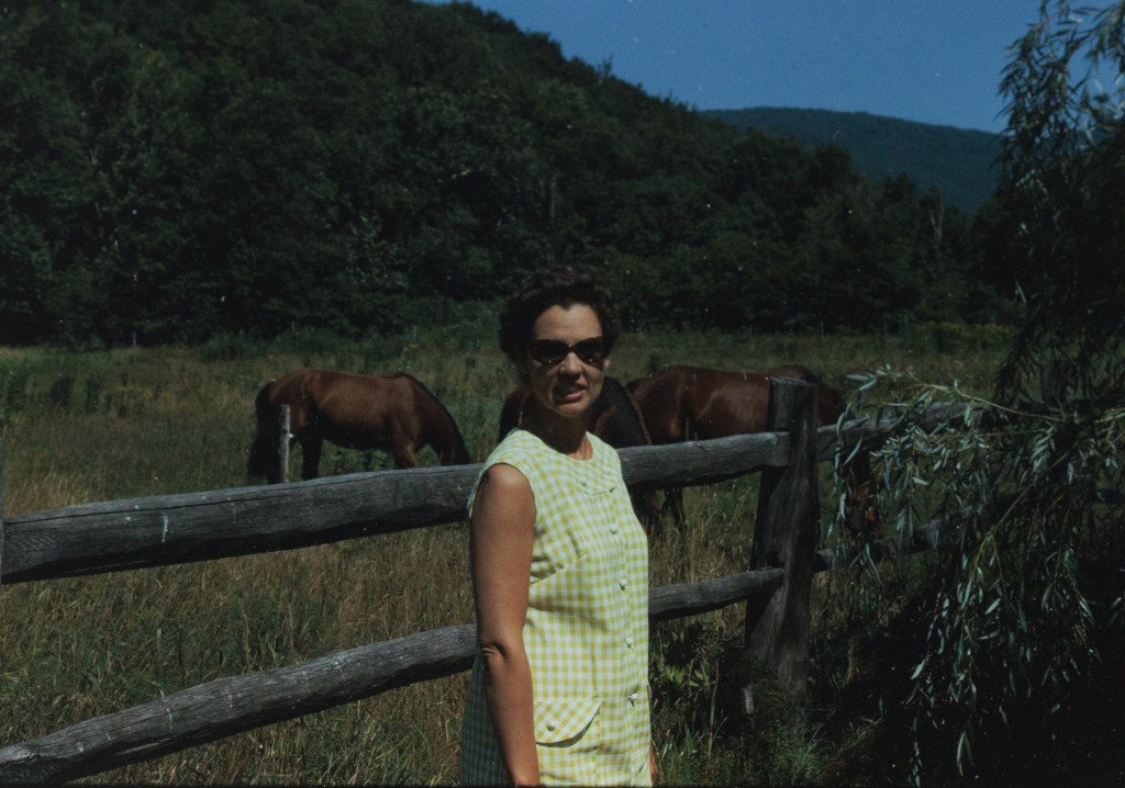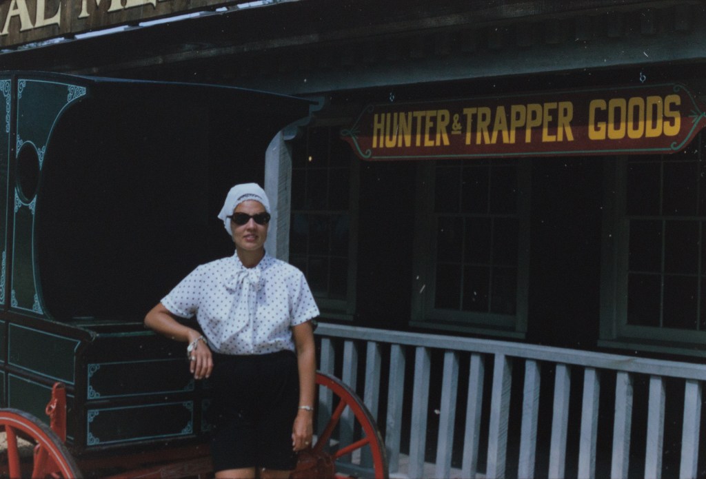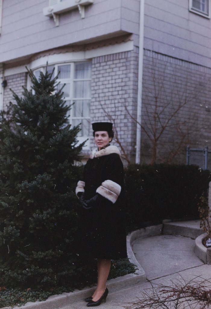 I picked up these wonderful slides at an estate sale in Hendersonville, North Carolina. Eleanor and Stephen Gray earlier resided in New York. Stephen was in the Navy, where he worked with electronics. The couple wasn’t much for throwing things away. Many of the items shown in the slides were still in the house. This included her clothing.